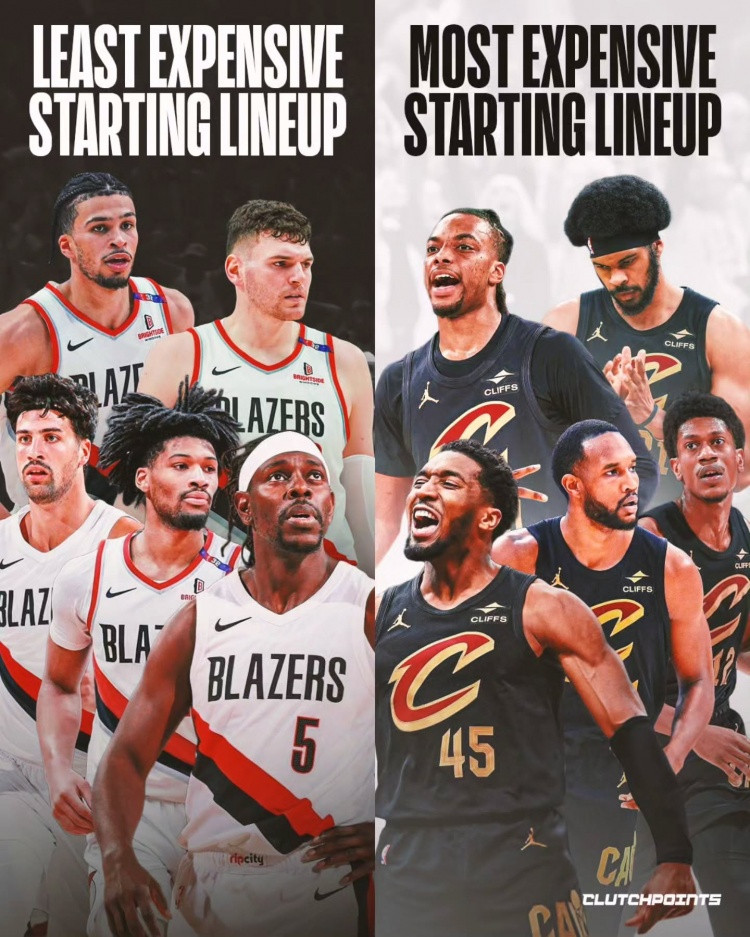 63 million VS 170 million! The potential starters of the Trail Blazers and Cavaliers are the cheapest and most expensive starters in the league respectively.