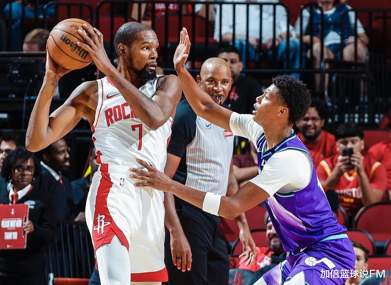 In terms of statistics, for the Rockets, Durant's debut can be described as explosive. He scored 20 points and 2 rebounds on 7 of 10 shots, Shen Jing had 13 points, 5 rebounds and 13 assists, Amen Thompson had 19 points, 7 rebounds and 6 assists, Smith Jr. had 18 points and 3 rebounds, Shepard had 11 points, 4 rebounds and 3 assists, and Holiday had 11 points. For the Jazz, Asberry, the No. 5 pick this year, was quite amazing. He scored 25 points and 6 rebounds on 11-of-16 shooting. Sensabaugh had 24 points and 3 rebounds. Nurkic had 12 points, 8 rebounds and 7 assists. George had 16 points and 9 assists. Hendricks had 15 points, 4 rebounds and 3 assists.