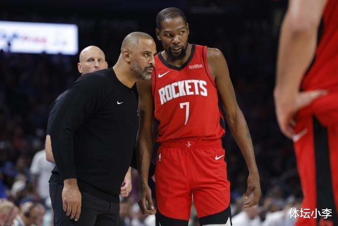 Durant played very steadily in this game. In 37 minutes, Durant made 11 of 19 shots, 4 of 8 three-pointers, and 5 of 8 free throws. He scored a team-high 31 points plus 5 rebounds and 3 blocks, with a plus-minus value of +20. This is the 158th game in Durant's career where he took fewer than 20 shots but scored at least 30 points, surpassing Adrian Dantley to take second place in NBA history, second only to Karl Malone (169 games). In addition, this is the fourth time Durant has scored 100 points in the Rockets career, becoming the second fastest in team history, second only to Harden (3 games).