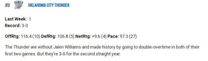 1-5: Thunder, Warriors, Nuggets, Knicks, Cavaliers