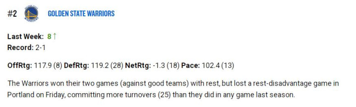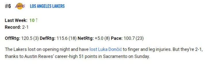 On October 29, the famous American media ESPN announced the team strength list for the second week of the new season. The defending champion Thunder continued to rank first, the Warriors soared to second, the Nuggets third, the Lakers soared to sixth, the Spurs eighth, the Rockets 11th, and Yang Hansen's Trail Blazers ranked 22nd.