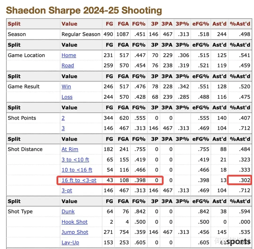 From the perspective of style, Sharp is now a typical magic ball style. He either scores at the bottom of the basket with his physical fitness and bounce. Or he shoots three-pointers from the outside. In the 2024-25 season, Sharp averaged 6.6 three-point shots per game, but only had a three-pointer rate of 31.1%, and his long shot effect was not as high as expected. In addition, his mid-range effect is very poor. Within the three-point line and 16 feet away from the basket, Sharp only had 39.8% shooting percentage in the 2024-25 season. It is worth mentioning that among the long-distance mid-range shots, Sharp only made 30.2% of the shots were taken after receiving assists from his teammates, and his assist rate was much lower than that of other areas, which means that Sharp felt very uncomfortable when receiving the ball in this area.