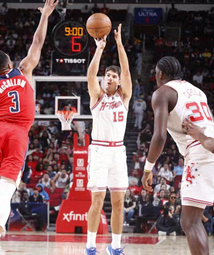 Let’s start with the most surprising new star outbreak. During the Rockets’ game against the Wizards, Sheppard, who will be drafted in 2024, went completely crazy and became the focus of the audience with textbook-level efficiency. The Rockets easily won 135-112. Shepard only played 24 minutes and 41 seconds as a substitute, but he delivered an almost perfect answer: 8 of 11 shots, 5 of 8 three-pointers, 0 of 1 free throws, 21 points, 3 rebounds, 3 assists, 2 steals and 1 block, with a plus-minus value of +13, completely dominating both offense and defense in his limited playing time.