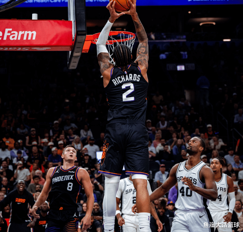 In the first quarter, Vassell hit a mid-range shot. After Allen hit a three-pointer, Vassell continued to hit a shot. After Dunn hit a three-pointer, Castle scored in the mid-range shot. After Allen dunked, Harper scored 2+1. Then the Suns went on a 6-0 run. After Barnes hit a three-pointer, the Suns went on a 7-0 run. After Harper scored to stop the bleeding, Iguodaro made a layup. After Booker scored, the Suns led to 11 points. In the final stage, the Spurs made many points to catch up with the score. At the end of the first quarter, the Spurs were 7 points behind. In the second quarter, Richards scored on a floater. After Kelden scored a layup, Richards made 2 of 2 free throws. In the following game, although the Spurs tried to chase points, Booker responded. Richards also scored in the paint. Subsequently, Goodwin and Allen hit consecutive three-pointers, and the Suns slowly led to 17 points. In the final stage, Booker and O'Neal withstood the Spurs' counterattack, and the Suns led by 18 points at the end of the half.