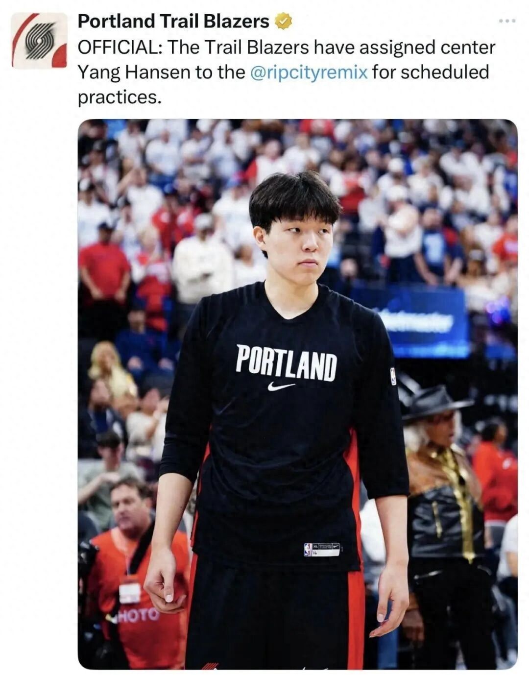 On November 2, the NBA Trail Blazers officially announced that this year’s No. 16 pick Yang Hansen will be sent to the Development League’s Tear City Mixer for training. In addition, according to Trail Blazers and team reporter Danny Marang, if Yang Hansen's playing time in the Trail Blazers is limited, he is expected to be transferred between the two teams this season. As we all know, Yang Hansen's reputation has not been very good since he was selected by the Trail Blazers with a high pick. The main reason is that the outside world thinks that Yang Hansen is low-energy and high pick.