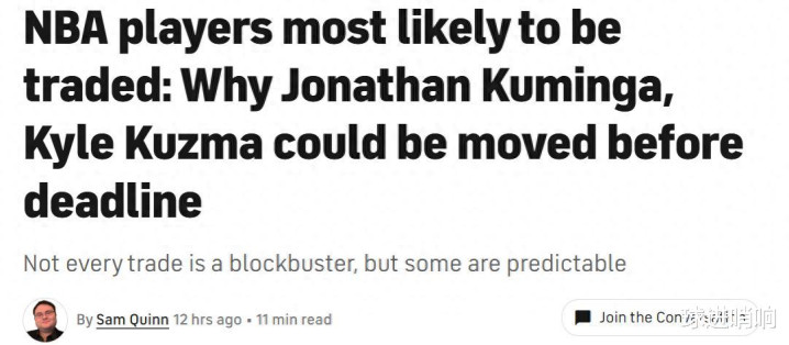 Who is most likely to be traded before the deadline? As the new season training camp began, the US media "cbssports" released a list of the top 5, of which Kumingga made an early layout for renewal of 48.5 million in two years.