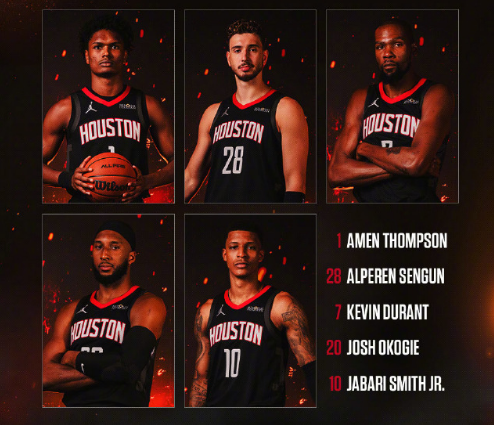 Won again! The five Rockets scored 92 points together! Durant won 5 of 18, and Okogie set a new season high