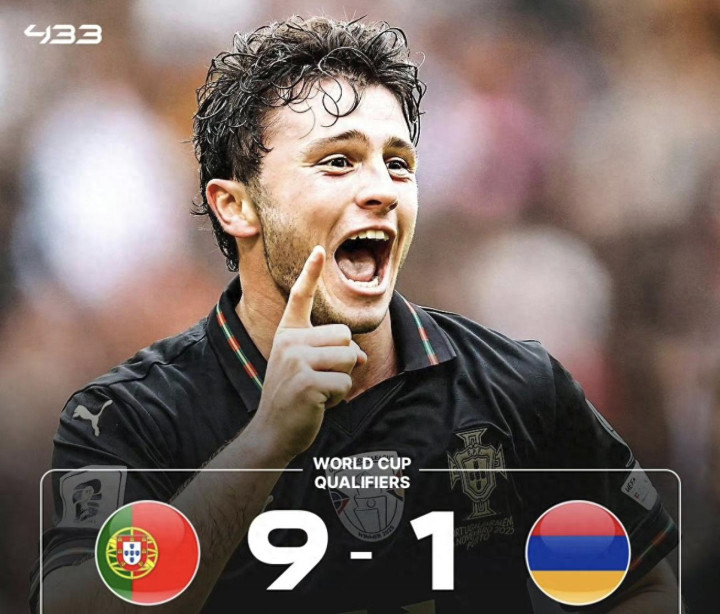 In the second half of the game, the Portuguese team's offensive continued unabated. B Fee scored 2 more goals and Joao Neves scored 1 more. Both of them scored. Conceicao Jr. made a contribution as a substitute, and the Portuguese team defeated Armenia 9-1 and advanced to the United States, Canada and Mexico.