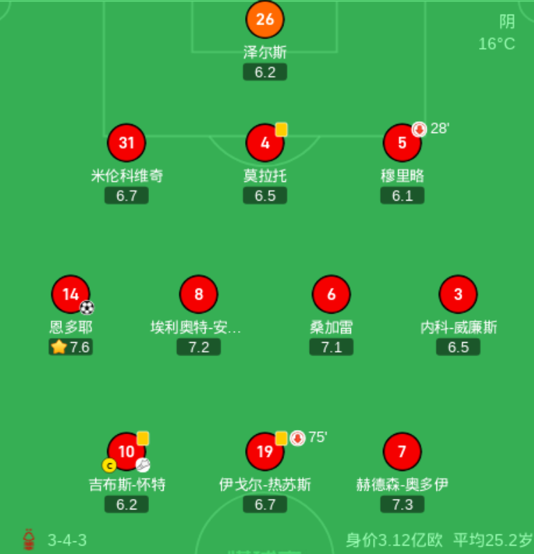 Shortly after the start of the game, Morato was given a yellow card for a foul. Nottingham Forest conceded the goal first. In the 18th minute of the game, Sino-Jetland relied on set-piece opportunity to break through the goal of Nottingham Forest. Serenson assisted Ottoman Dior to score. However, Nottingham Forest quickly equalized the score. In the 22nd minute, Gibbs White made a cross pass on the right, and Endoye made a scooter shot, and the ball entered! Both sides returned to the same starting line. In the 24th minute, Sino-Jetland led again. This time Serenson scored his own goal and he headed the ball! Serenson, who is only worth 5 million euros, performed really well and made a successful pass. Although Nottingham Forest made a series of substitutions after that, the city gate was lost again in the 88th minute. Biskov pushed the ball and scored, expanding the score. Nottingham Forest is in a desperate situation. Although Chris Wood scored a penalty in the last moment and scored a goal. But there was little time left, and Nottingham Forest failed to score again. In the end, Nottingham Forest lost 2-3 to Sino-Jetland, which made a big upset, and the 560 million euro formation was useless.