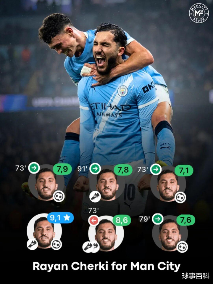In the 79th minute of the game, Pep Guardiola replaced Savinho and Doku with Seat B and Serki respectively, intending to continue to strengthen the offense. And Shirki performed brilliantly after coming on the court. He won 2 ground battles, completed 1 successful pass, and ended the game with a beautiful shot. According to Opta statistics, Shirki played 268 minutes in all competitions this season, scored 3 goals, assisted 3 times, and participated in a total of 6 goals, averaging 1 goal every 45 minutes.