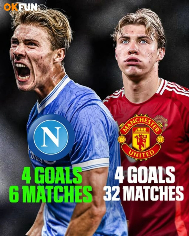 Manchester United spent 72 million pounds to introduce Hoylund from Atlanta, but he only scored 14 goals in 62 Premier League games. Both the club and the coach were extremely disappointed with Hoylund, so they signed Sheshko for 85 million euros. However, the Denmark international found his form after being rented out to Naples. He scored 4 goals in 6 appearances. Head coach Antonio Conte was very satisfied.