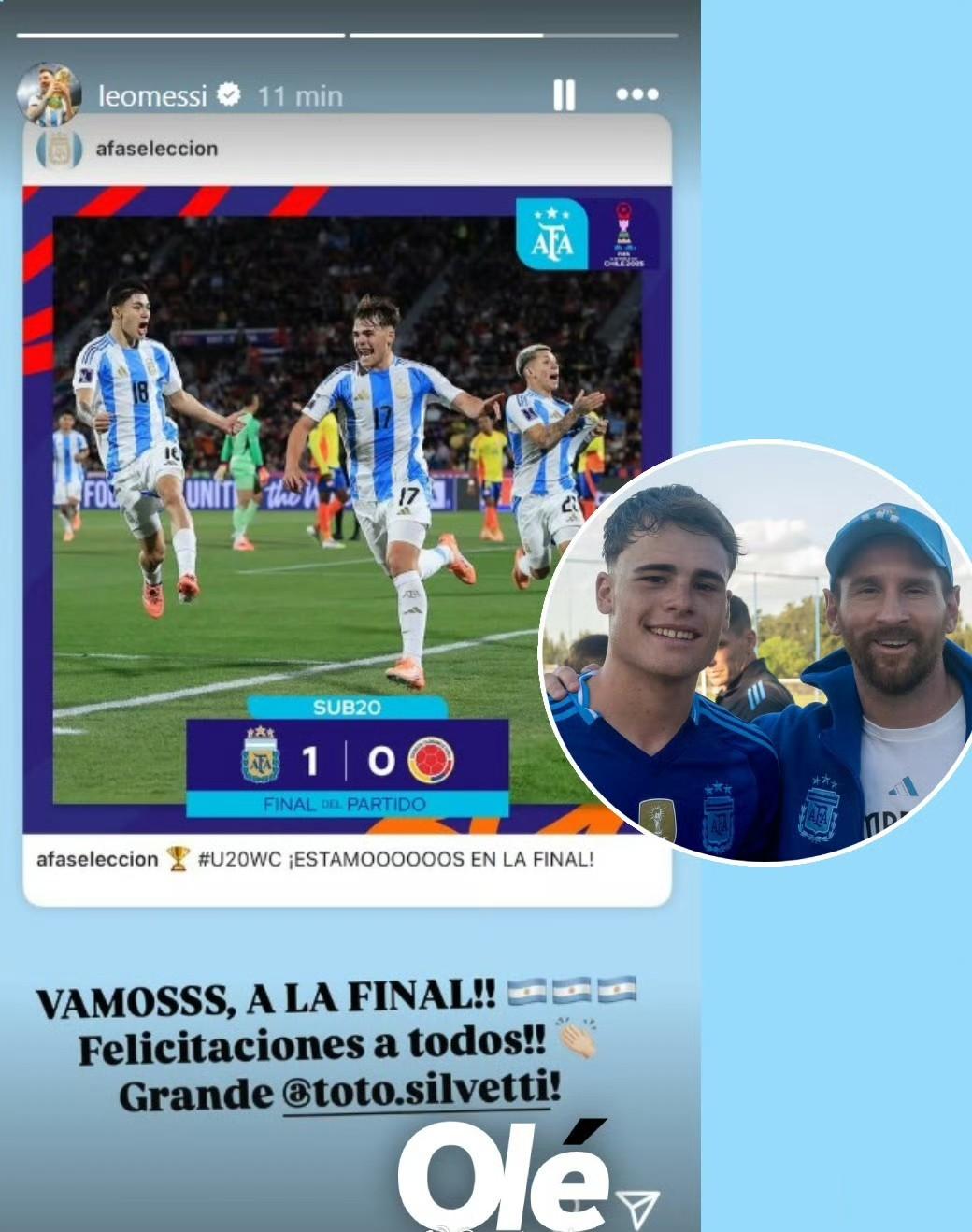 Messi INS congratulates Argentina on advancing to the U20 World Cup finals: Silveti, you are great!