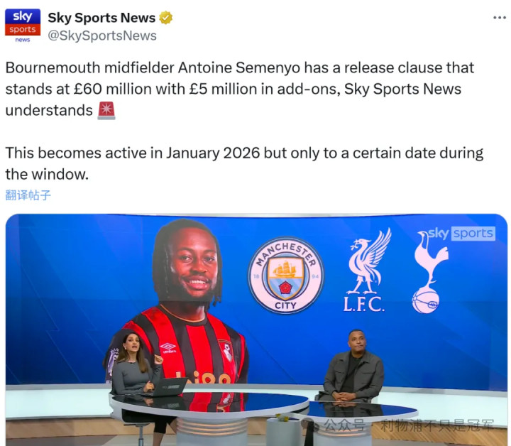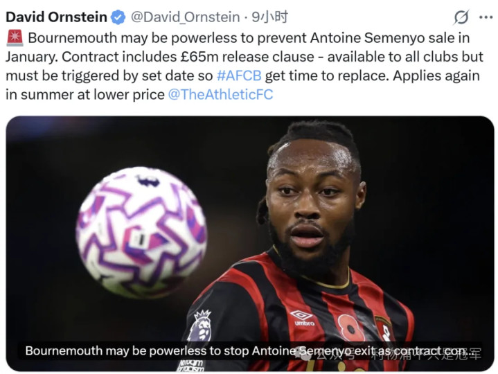 --Teams such as Manchester United and Tottenham were interested in acquiring Semenho this summer, but the latter signed a new contract with Bournemouth in July that expires in 2030, and a termination clause was included in the contract.