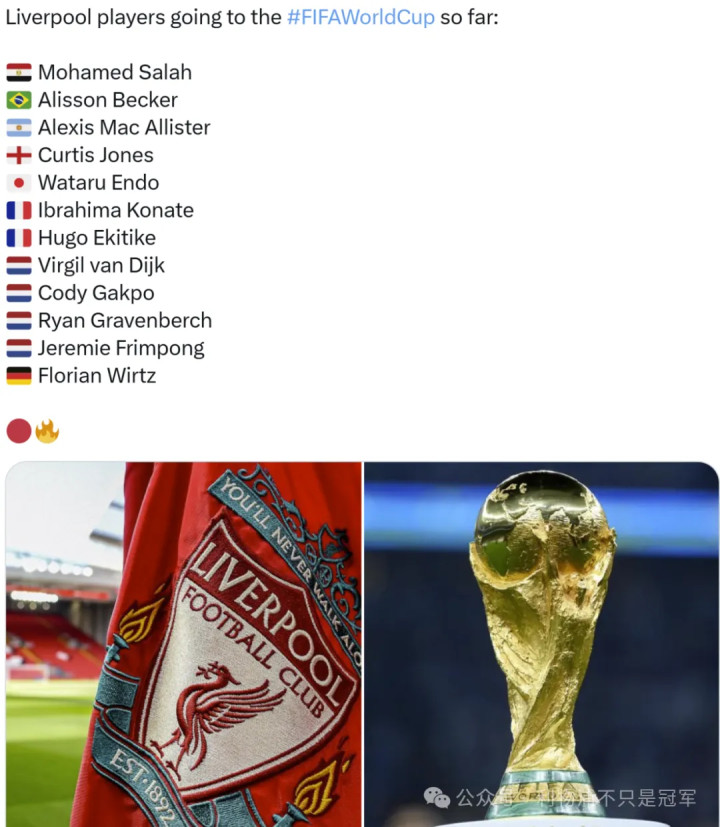 Regarding the attitude of Liverpool players in participating in the World Cup, first of all, it is a big dream for the players to represent their motherland in the World Cup. It would be a good thing if they can participate. If unfortunately they are not shortlisted, it will actually be a good thing for Liverpool, so that they can have a better rest next summer, which will help them to be in better shape for Liverpool next season.
