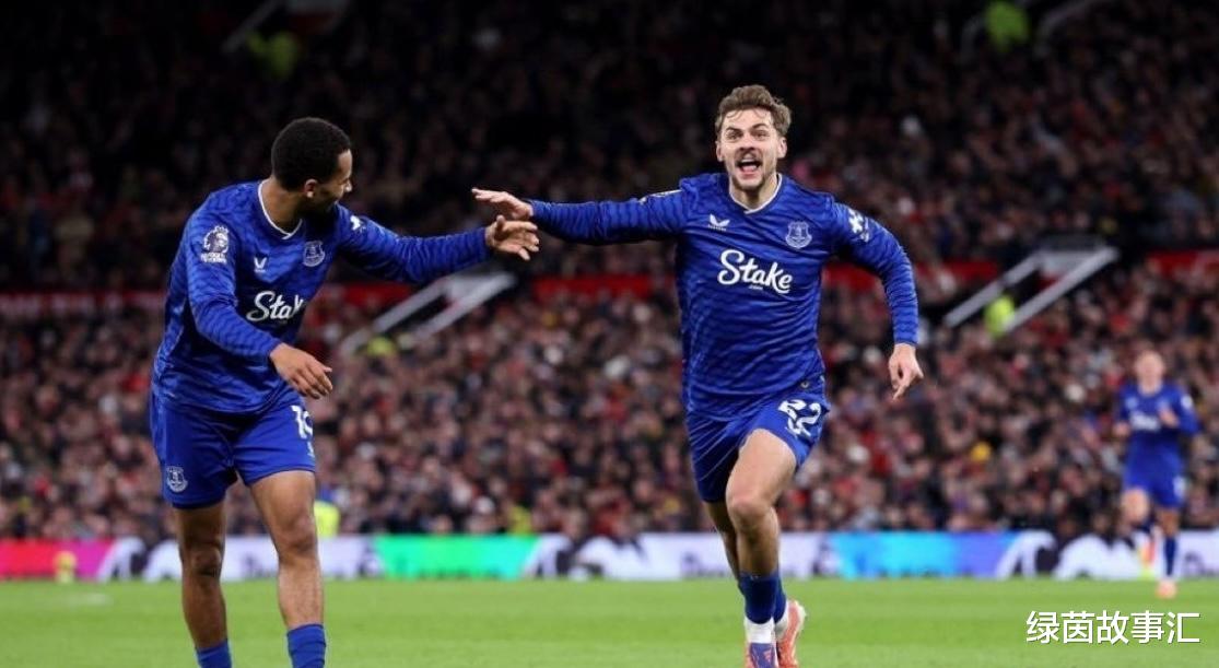 But what no one expected was that the first scorer in this game was the numerically disadvantaged Everton team. In the 28th minute, Everton penetrated through the middle to create murderous opportunities. Hall at the top of the arc continued to dribble and break through. Although the ball was damaged by the Manchester United defender midway, Hall, who had quick eyesight and quick feet, made a slight adjustment and directly chose to shoot. The ball drew a beautiful arc and flew into the net. Everton, who had one less player to play, unexpectedly took a 1-0 lead!