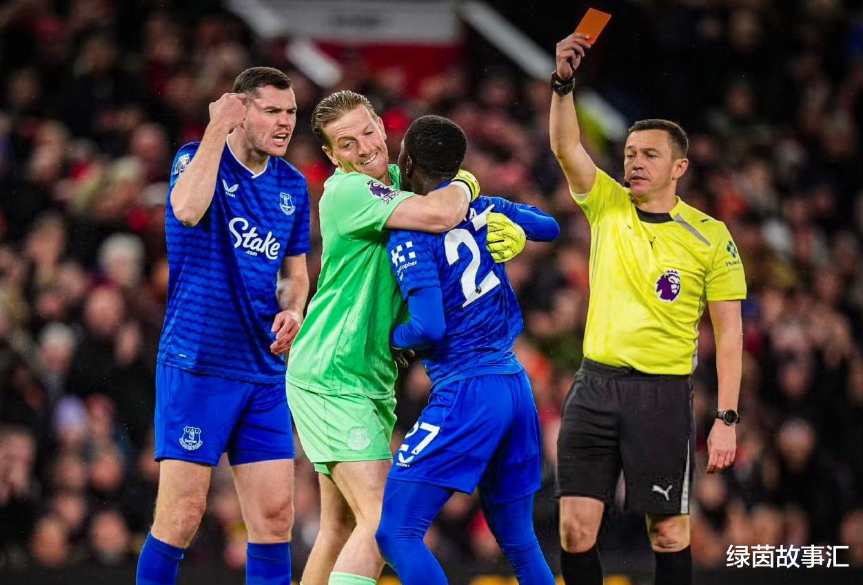 Only 13 minutes into the game, Everton center back Gueye gave Manchester United another big gift. When handling the ball in the backcourt, he and his teammate Keane had a fierce conflict. The out-of-control Gueye slapped Keane directly. Referee Harrington, who witnessed everything at close range, decisively showed Gueye a red card and Manchester United dramatically took the numerical lead.