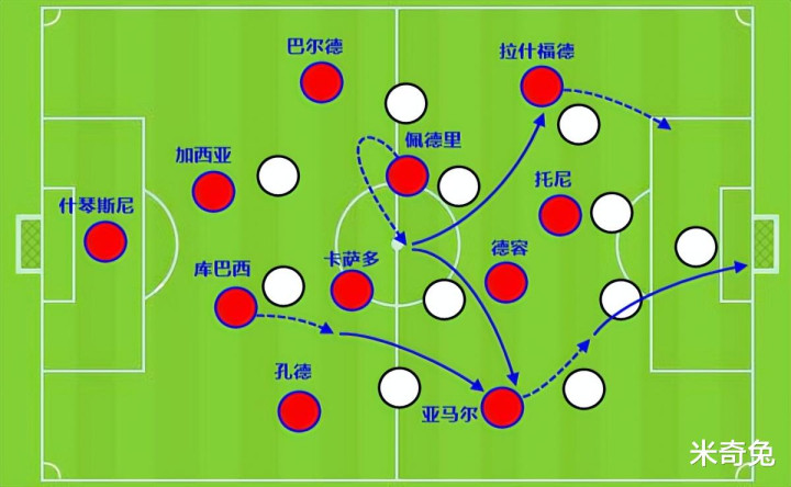 Pedri's basic tactical strategy at Barcelona is that he can provide stable ball control in the center circle, transfer the ball to the left and right sides, and use his circle control and change of direction to bring about changes in the direction of the attack.